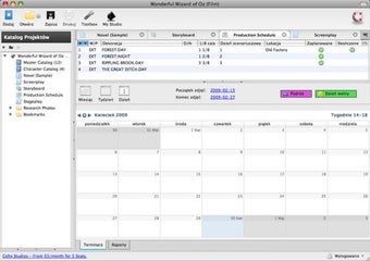 Celtx Portable pomaga również stworzyć harmonogram pracy. W wygodnym kalendarzu można szczegółowo zaplanować poszczególne dni zdjęciowe oraz lokalizacje. Dzięki modułowi współpracy możesz współdzielić opracowany materiał z innymi członkami ekipy. Interfejs jest bardzo wygodny, przejrzysty i elegancki.